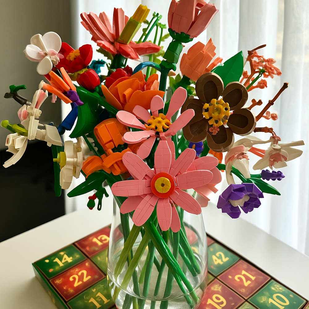 Each advent box contains a mini flower block build, with 24 unique designs to discover throughout December. As you open a new compartment each day, your collection grows into a stunning floral display — the perfect way to build excitement leading up to Christmas.